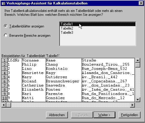 Das muß dann bereinigt werden. Entweder von Hand in Access oder auch schon In Excel. Man kann die Tabelle dann in