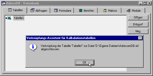 Die Verknüpfung bewirkt, das die Daten zwischen Access und Excel in beiden Richtungen ausgetauscht werden.