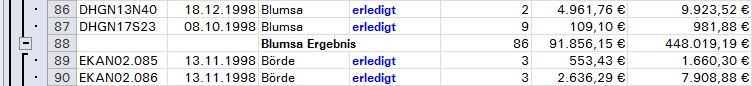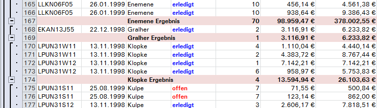 Die Schaltflächen mit dem Plus- bzw. Minuszeichen öffnen und schließen den jeweiligen Gruppierungsbereich.