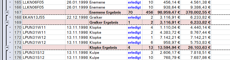 Leider werden von Excel die automatisch erzeugten Ergebniszeilen nicht besonders gut hervorgehoben: