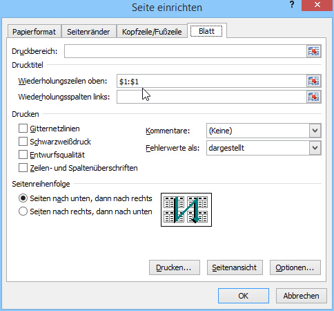 Auf dem nächsten Bild sind die gestrichelten Linien zu erkennen, die die Seitenumbrüche kennzeichnen.