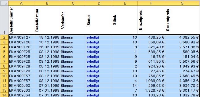 Mit einem Klick auf OK wird diese Dialogbox geschlossen und die bedingten Formate sind definiert. Der Vollständigkeit halber noch mal das Bild mit dem Ergebnis.