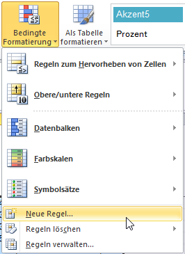 Nun wird über den Reiter Start / Formatvorlagen / Bedingte Formatierung das nachfolgende Kontextmenü aufgerufen: