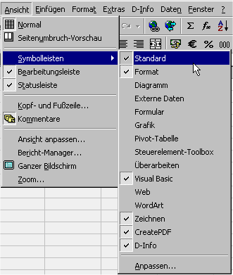 Dort gibt es verschiedene Symbolleisten, die vom Anwender nach seinen Wünschen angepasst