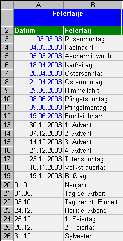 Die Funktionen können genau so, wie ich es für die Osterfeiertage beschrieben habe, in das Tabellenblatt Termine eingefügt werden.