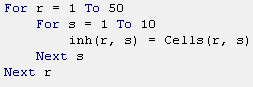 Zeile (Variable r steht auf 1) alle Zellinhalte einzulesen. Dabei wird die Variable s auf den Wert 10 hochgezählt.